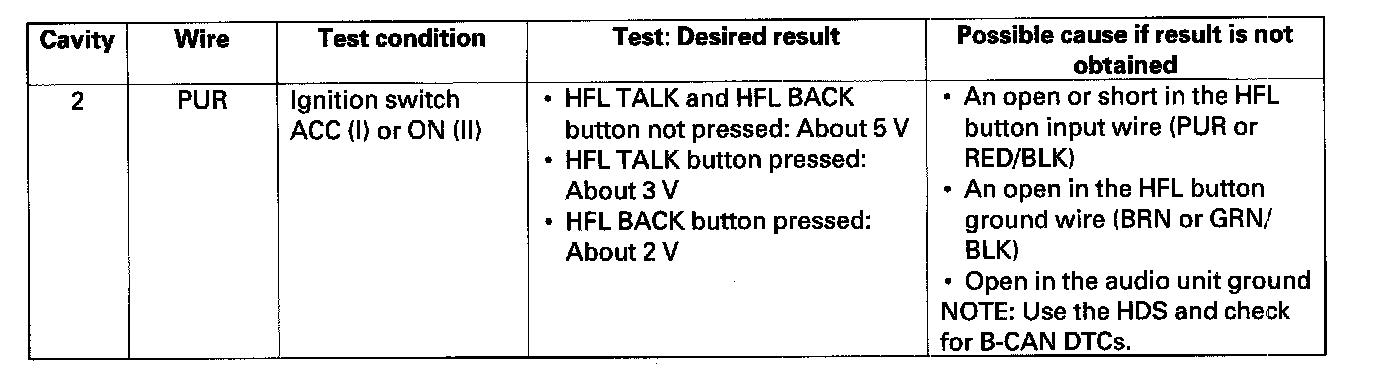 - If all input test prove OK, the HandsFreeLink control unit must be faulty; replace it.
