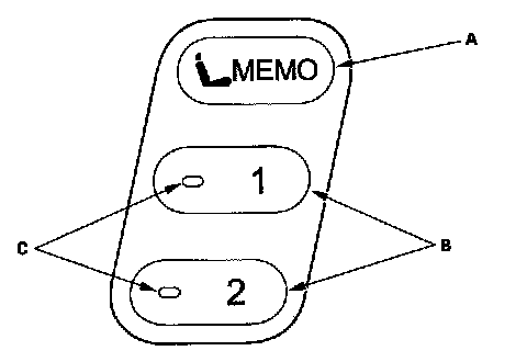 2. Press and hold the MEMO button (A) and both position buttons (B) in the driving position memory switch at the same time.