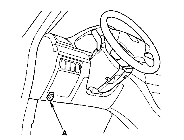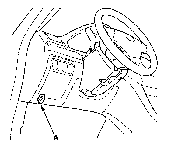 2. With the ignition switch OFF, connect the HDS to the date link connector (DLC) (A) under the driver's side of the dashboard.