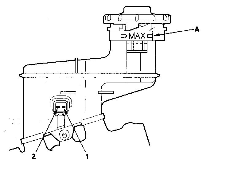 Brake Fluid Level Switch TestCheck for continuity between the terminals (1) and (2) with the float in the down position and in the up position.