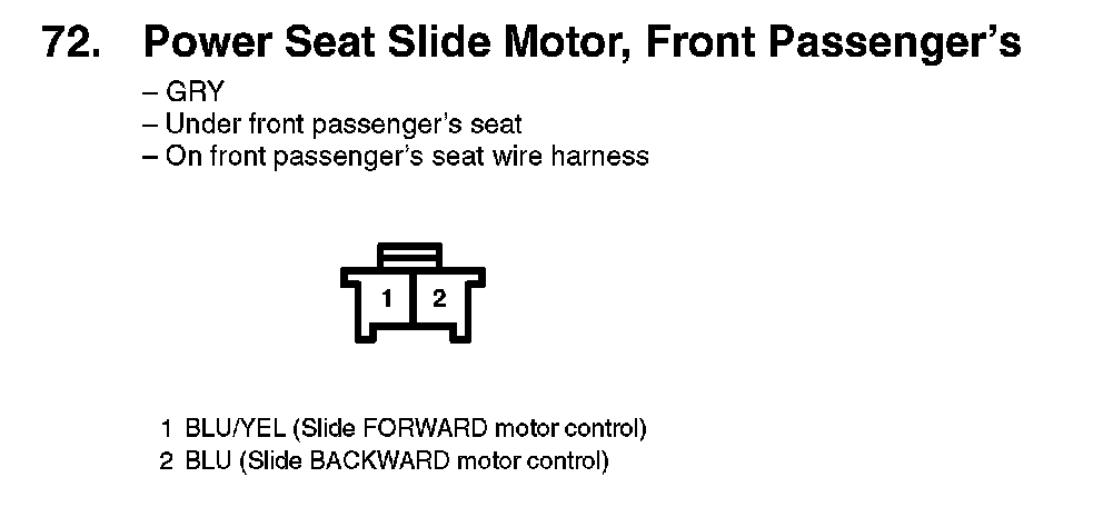72. Power Seat Slide Motor, Front Passenger's: