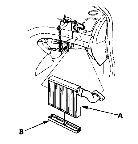 5. Carefully pull out the evaporator core (A) and the plate (B) without bending the pipes.
