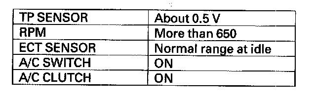 6. Using the HDS, confirm the following values in the PGM-FI Data List at idle.