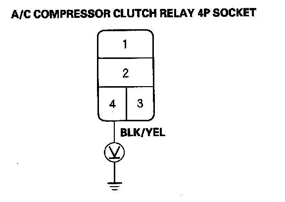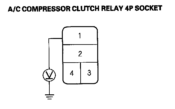 12. Measure the voltage between the No. 4 terminal of the A/C compressor clutch relay 4P socket and body ground.