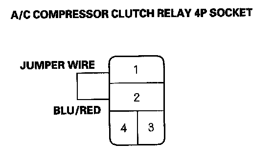 9. Connect the No. 1 and No. 2 terminals of the A/C compressor clutch relay 4P socket with a jumper wire.