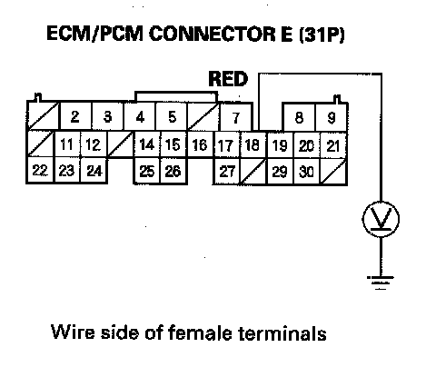 17. Using a backprobe set, measure the voltage between the No. 18 terminal of ECM/PCM connector E (31P) and body ground with the ECM/PCM connectors connected.