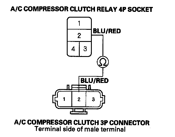 20. Check for continuity between the No. 2 terminal of the A/C compressor clutch relay 4P socket and the No. 2 terminal of the A/C compressor clutch 3P connector.