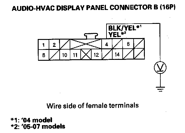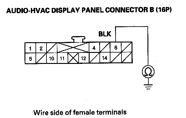YES - Check for loose wires or poor connections at audio-HVAC display panel connector B (16P). If the connections are good, substitute a known-good audio-HVAC display panel, and recheck. If the symptom/indication goes away, replace the original audio-HVAC display panel.