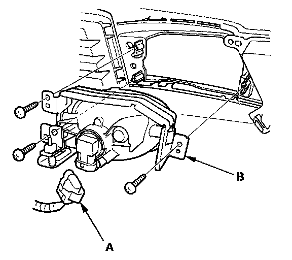 3. Disconnect the 2P connector (A) from the front fog light (B).