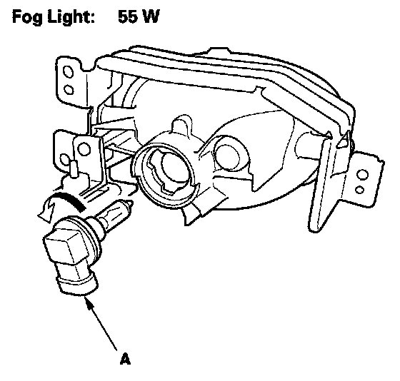 5. Turn the bulb socket (A) 45° counterclockwise to remove it from the housing.