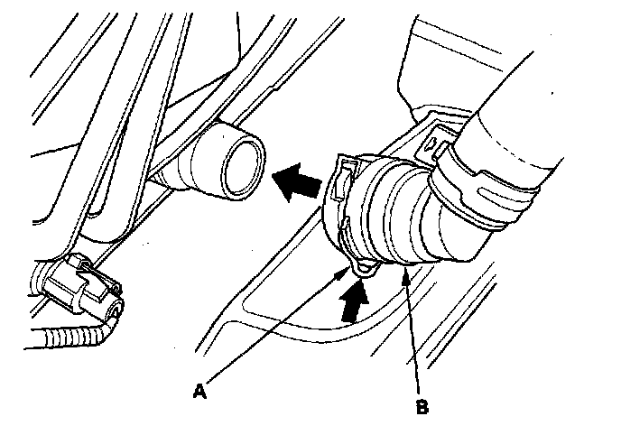 1. Check the quick connector (A) and set ring (B) for cracks or damage. If the connector and/or set ring are cracked or damaged, replace the connector.