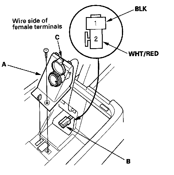 5. Turn the ignition switch to ACC (I), and check for voltage between the No. 2 terminal and body ground. There should be battery voltage.