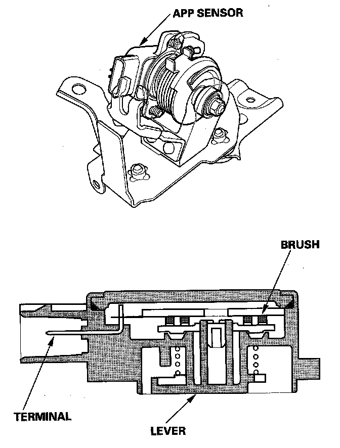 As the accelerator pedal position changes, the sensor varies the signal voltage to the ECM/PCM.