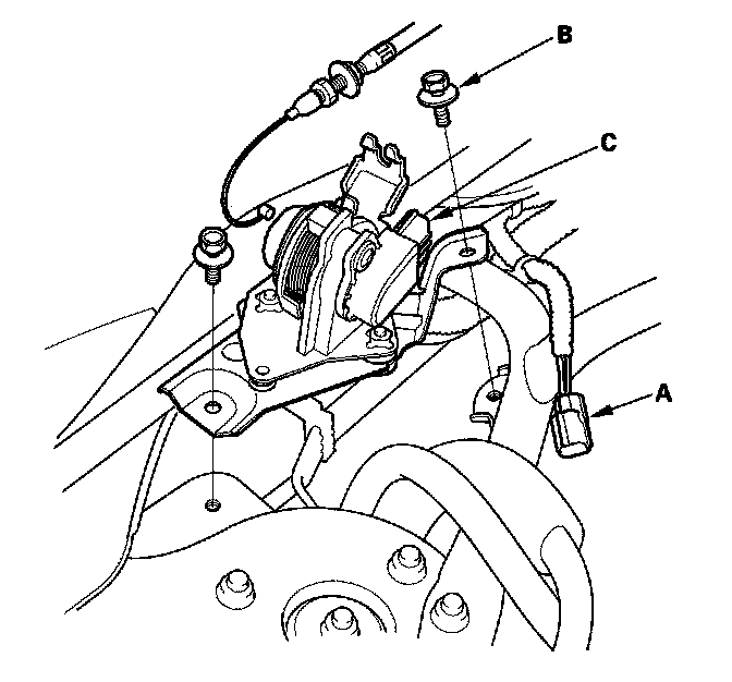 3. Remove the bolts (B), and the APP sensor (C).