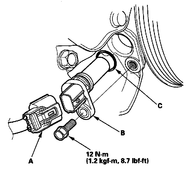 3. Install the parts in the reverse order of removal with a new O-ring (C).