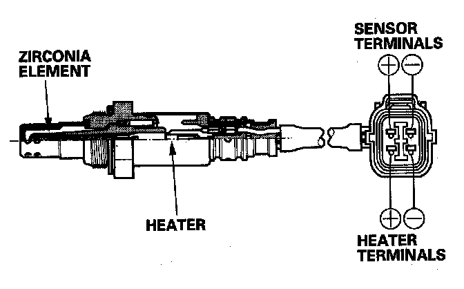 The A/F sensor operates over a wide air/fuel range. The A/F sensor is installed upstream of the TWC, and sends signals to the ECM/PCM which varies the duration of fuel injection accordingly.