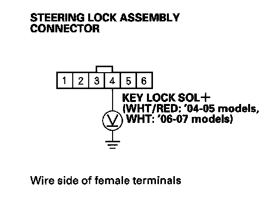 5. Check the voltage between steering lock assembly connector terminal No. 4 and body ground.