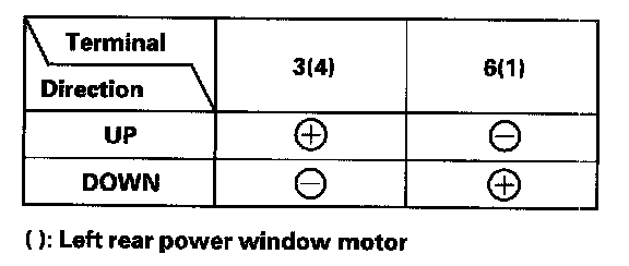 3. Test the motor by connecting battery power and ground according to the table. When the motor stops running, disconnect one lead immediately.