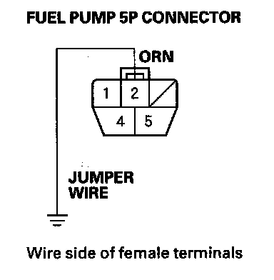 9. Connect fuel pump 5P connector terminal No. 2 to body ground with a jumper wire.