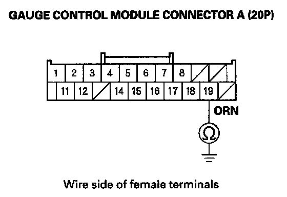 10. Check for continuity between gauge control module connector A (20P) terminal No. 19 and body ground.