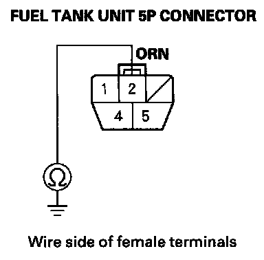 9. Check for continuity between fuel tank unit 5P connector terminal No. 2 and body ground.