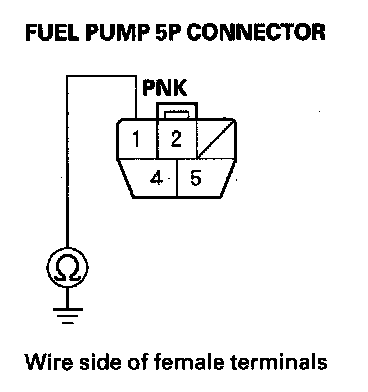 11. Check for continuity between secondary fuel gauge sending unit 5P connector terminal No. 1 and body ground.
