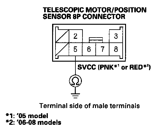 10. At the sensor side, check for continuity between telescopic motor/position sensor 8P connector terminal No. 5 and body ground (motor body).