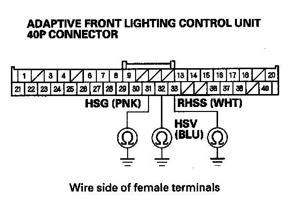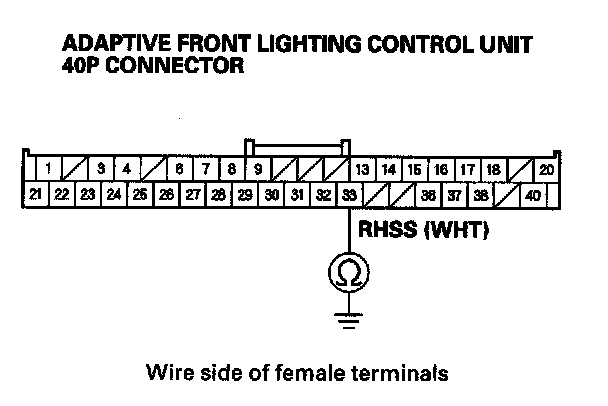 19. Check for continuity between adaptive front lighting control unit 40P connector terminal No. 33 and body ground.