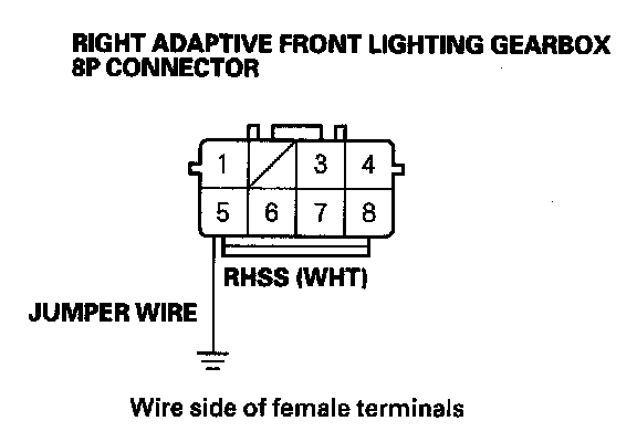 18. Connect right adaptive front lighting gearbox 8P connector terminal No. 5 to body ground with a jumper wire.