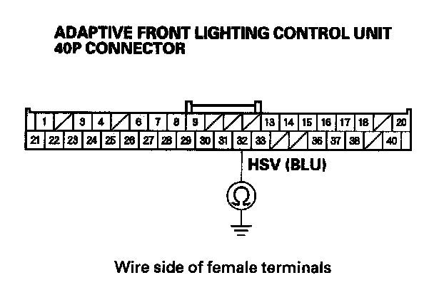 21. Check for continuity between adaptive front lighting control unit 40P connector terminal No. 32 and body ground.