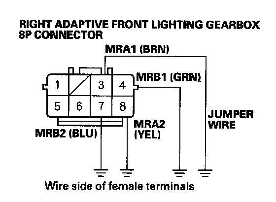 20. Connect right adaptive front lighting gearbox 8P connector terminal No. 1 to body ground with a jumper wire.