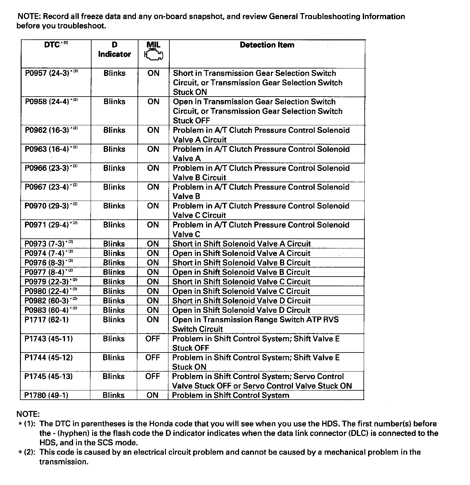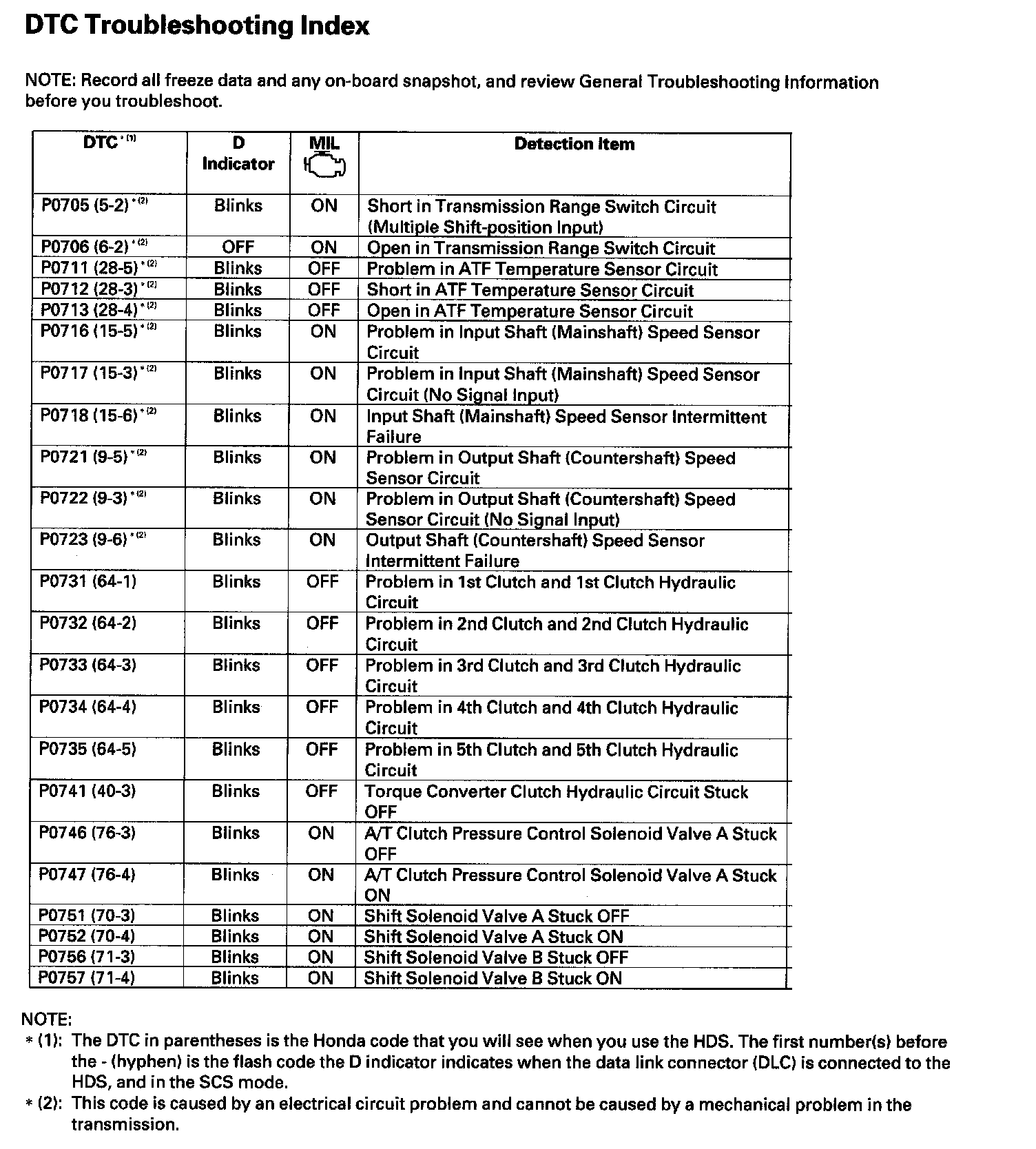DTC List - Automatic Transmission