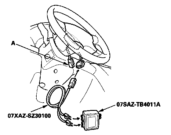 4. Disconnect the driver's airbag 4P connector (A) from the cable reel.