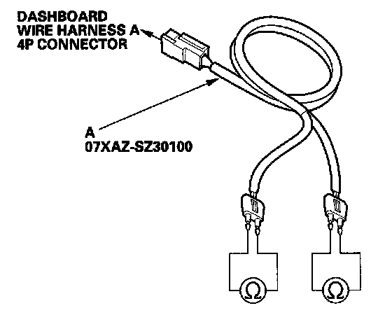 11. Connect the SRS inflator simulator (2 ohms connectors) and simulator lead F to dashboard wire harness A.