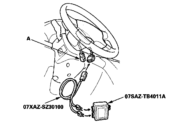 4. Disconnect the driver's airbag 4P connector (A) from the cable reel.