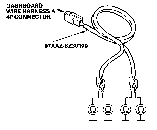 11. Connect the SRS inflator simulator (2 ohms connectors) and simulator lead F to dashboard wire harness A.