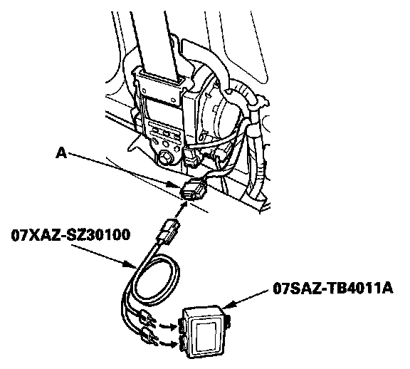 4. Disconnect the left side wire harness 4P connector (A) from the driver's seat belt tensioner.