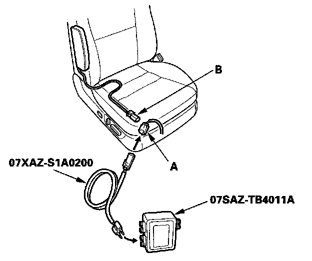 4. Disconnect the right side wire harness 2P connector (A) from the front passenger's side airbag (B).