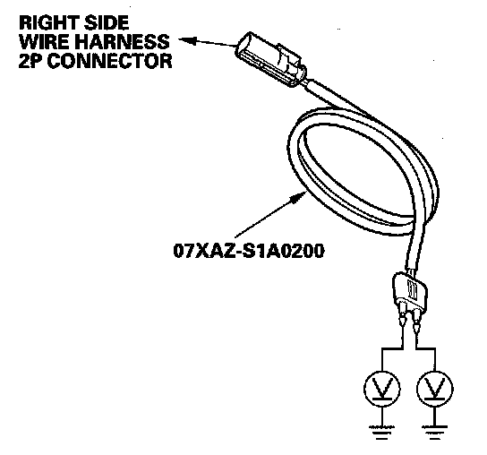 5. Connect the SRS inflator simulator (2 ohms connectors) and simulator lead E to the right side wire harness.