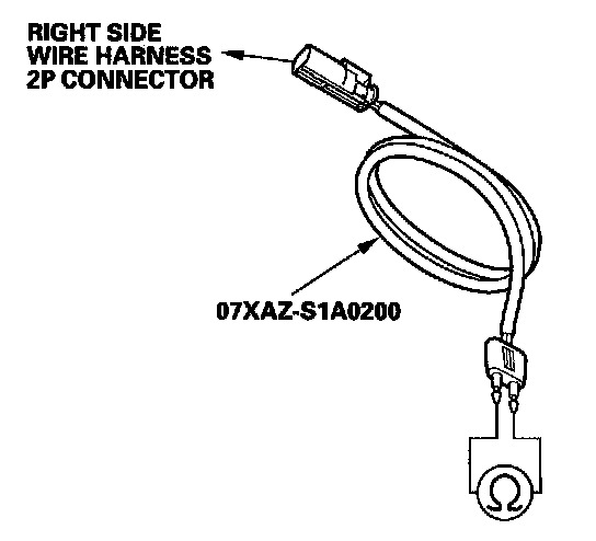 4. Disconnect the right side wire harness 2P connector (A) from the right side curtain airbag (B).