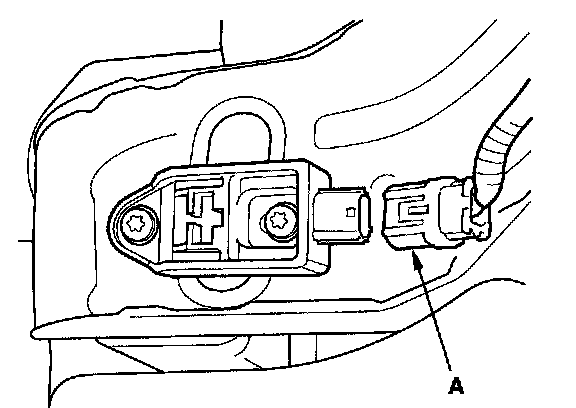 6. Disconnect the engine compartment wire harness 2P connector (A) from the left front impact sensor.