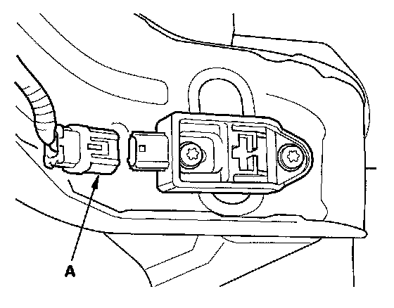 6. Disconnect the engine compartment wire harness 2P connector (A) from the right front impact sensor.