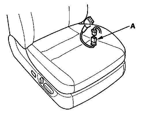 5. Disconnect the front passenger's seat belt buckle switch 3P connector (A) from the front passenger's seat wire harness.