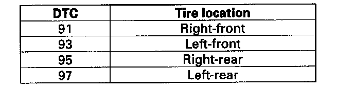 DTC 91, 93, 95, 97: Tire Pressure Sensor Internal Error