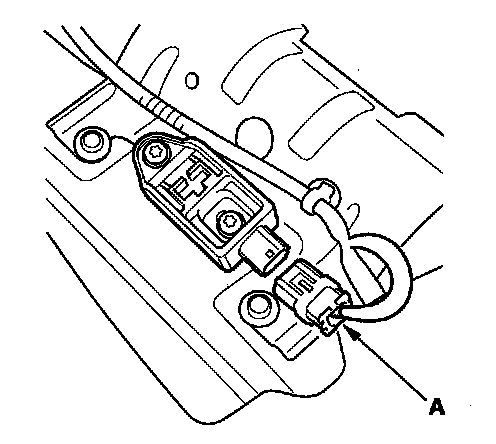4. Disconnect the left side wire harness 2P connector (A) from the rear safing sensor.