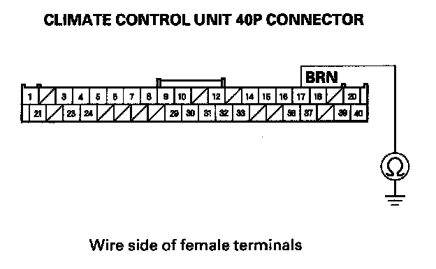 8. Check for continuity between body ground and the climate control unit 40P connector No. 17 terminal.