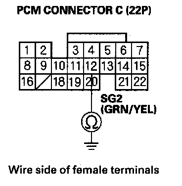16. Check for continuity between PCM connector terminal C12 and body ground.