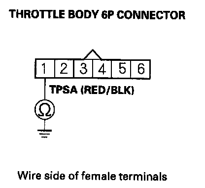 8. Check for continuity between throttle body 6P connector terminal No. 1 and body ground.