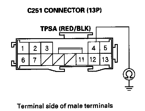 10. Check for continuity between C251 connector (13P) terminal No. 4 and body ground.