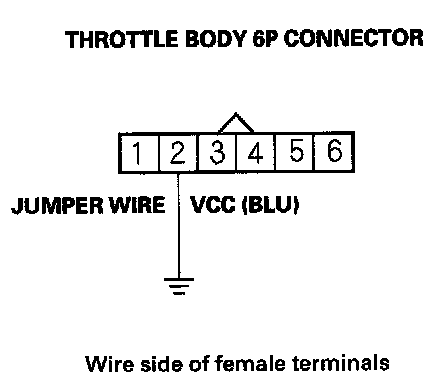 15. Connect throttle body 6P connector terminal No. 2 to body ground with a jumper wire.